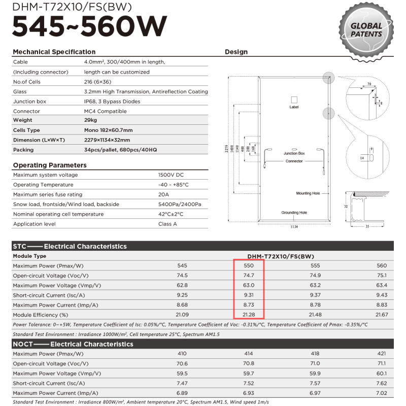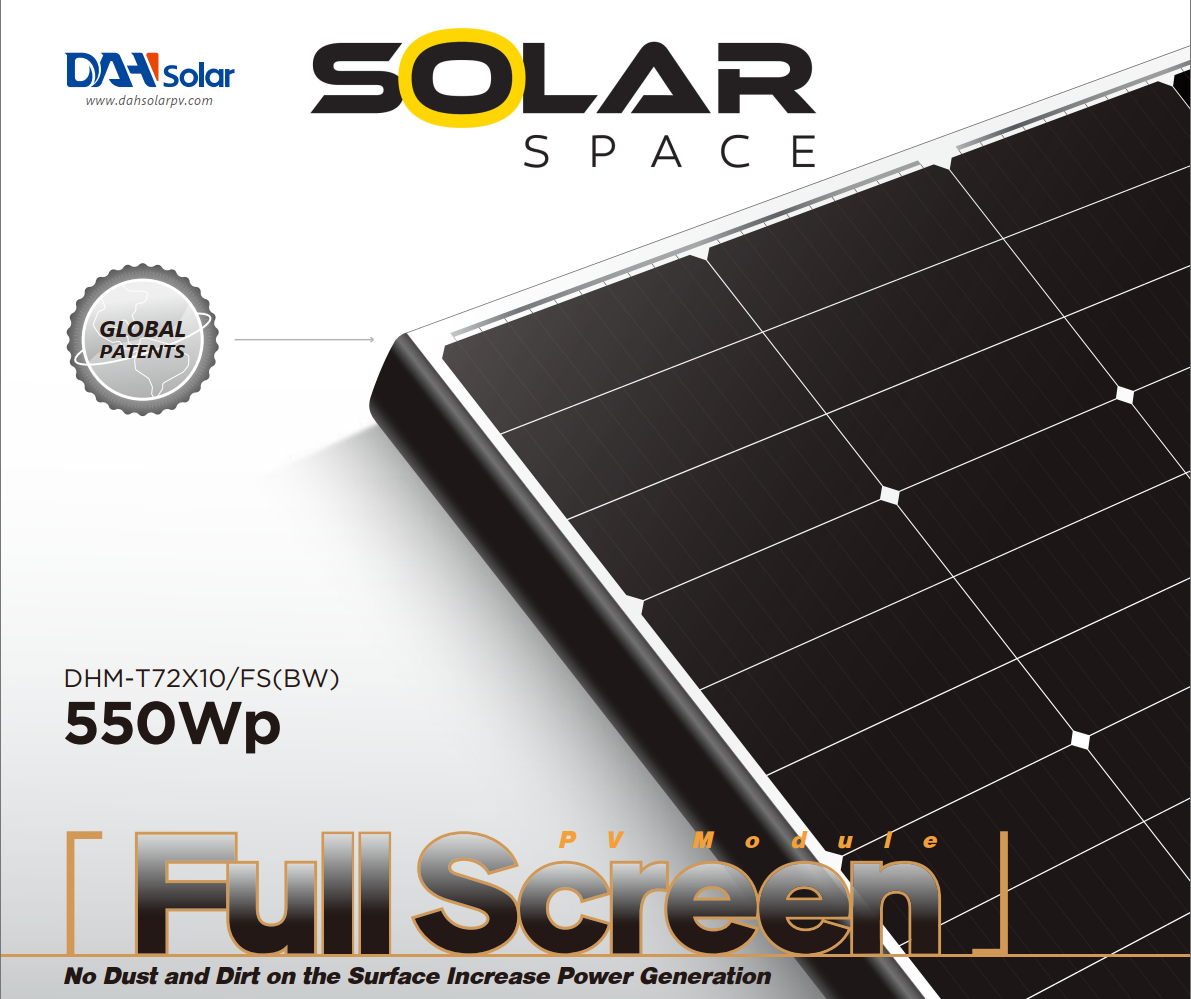 Datasheet k solárnym panelom DAH Solar 550Wp, Full Screen, Black Frame