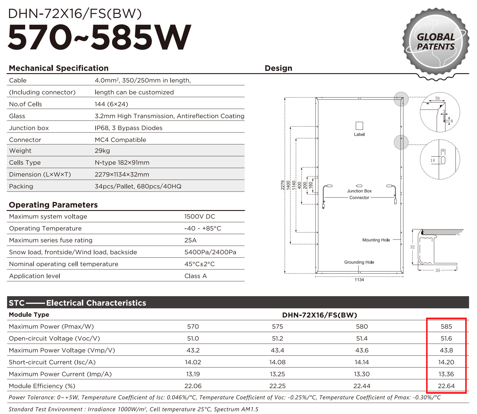 Datasheet k solárnym panelom DAH Solar 585Wp, Full Screen, Black Frame
